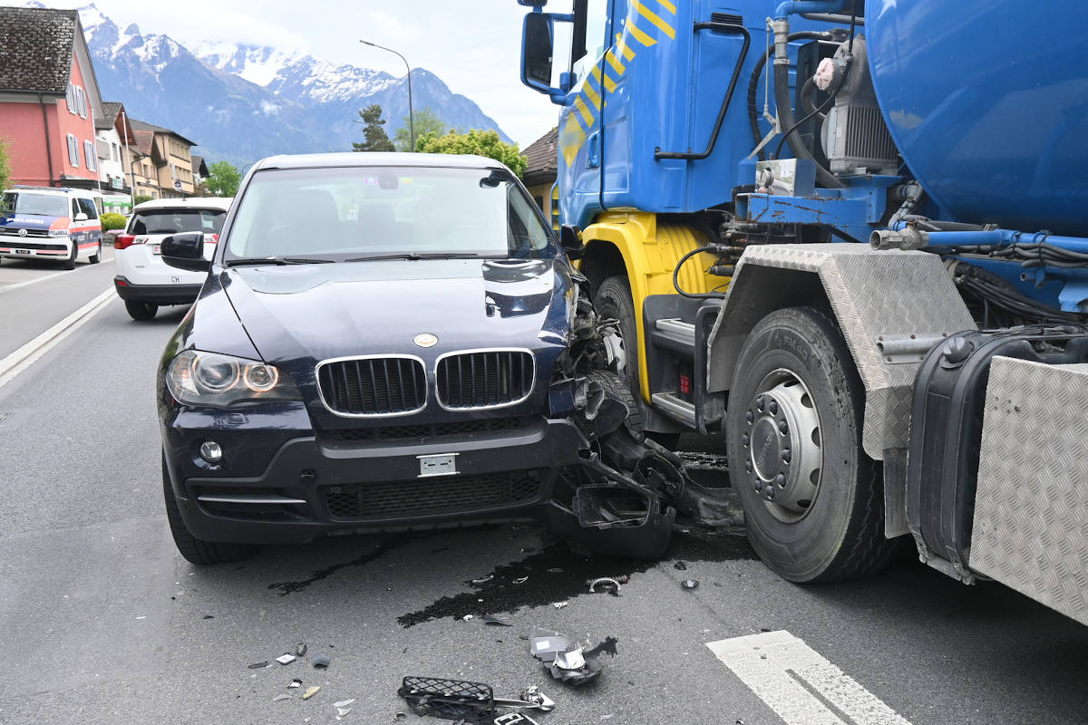 Personenwagen kollidiert mit Lastwagen in Vaduz (Bildquelle: Landespolizei Liechtenstein)