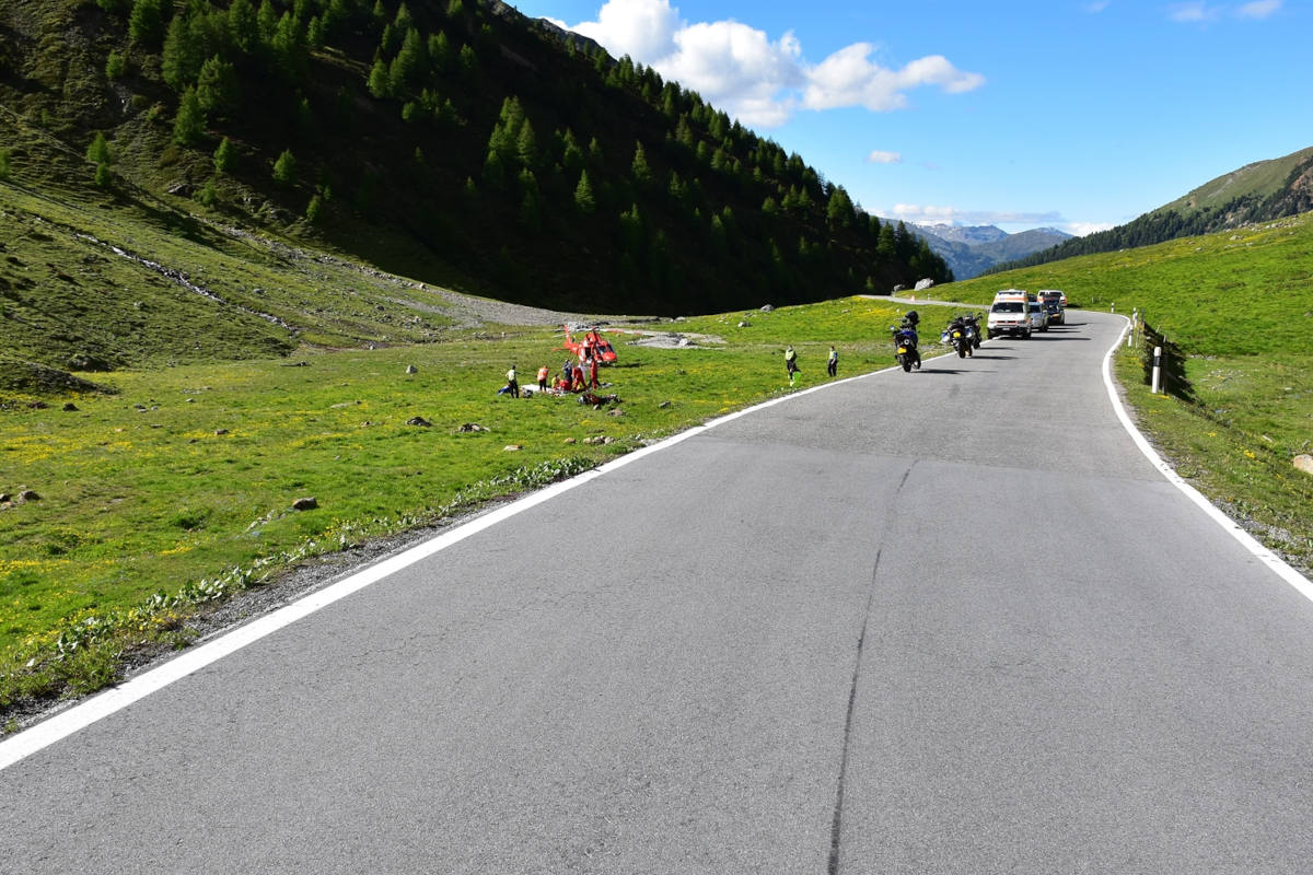 Am Freitagnachmittag verunfallte auf der Umbrailpassstrasse ein Motorradfahrer. Der Zweiradlenker war neben die Fahrbahn gelangt und kollidierte anschliessend im Weideland mit Steinen.