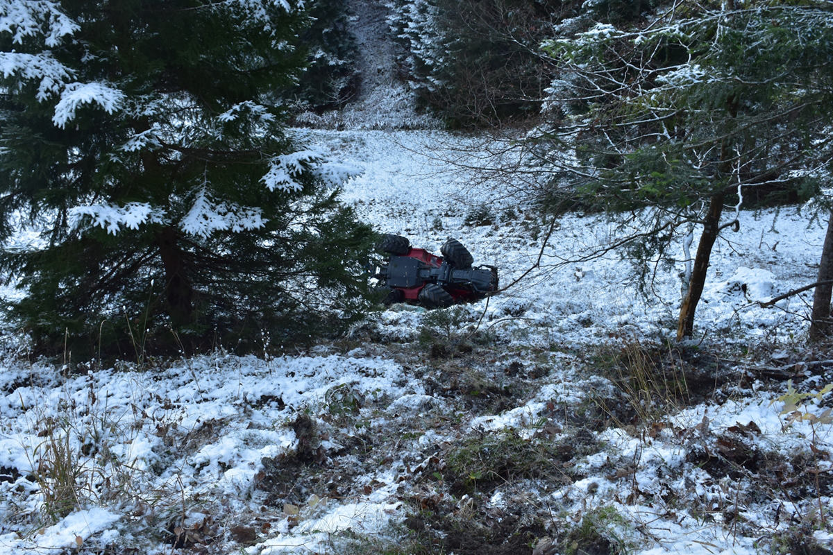 Der Mann kam mit seinem Traktor von der Strasse ab und überschlug einen Abhang hinunter. (Bildquelle: Kantonspolizei Graubünden)
