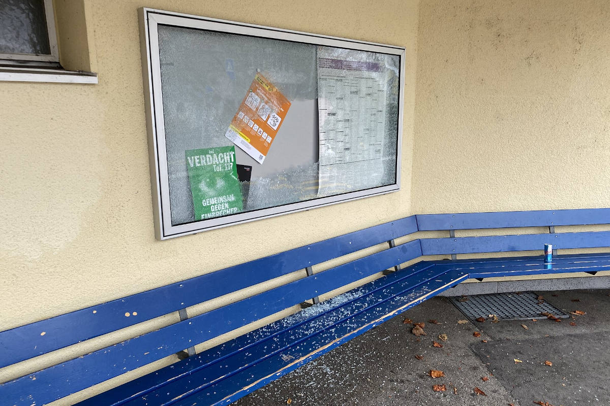Vandalismus in der Stadt Schaffhausen – Glaskasten bei Bushaltestelle beschädigt