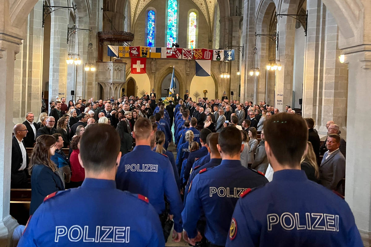 Am Freitag (30.9.2022) sind im Fraumünster in Zürich 37 Polizeiaspirantinnen und Polizeiaspiranten (28 Männer / 9 Frauen) in feierlichem Rahmen durch den Sicherheitsdirektor vereidigt worden.