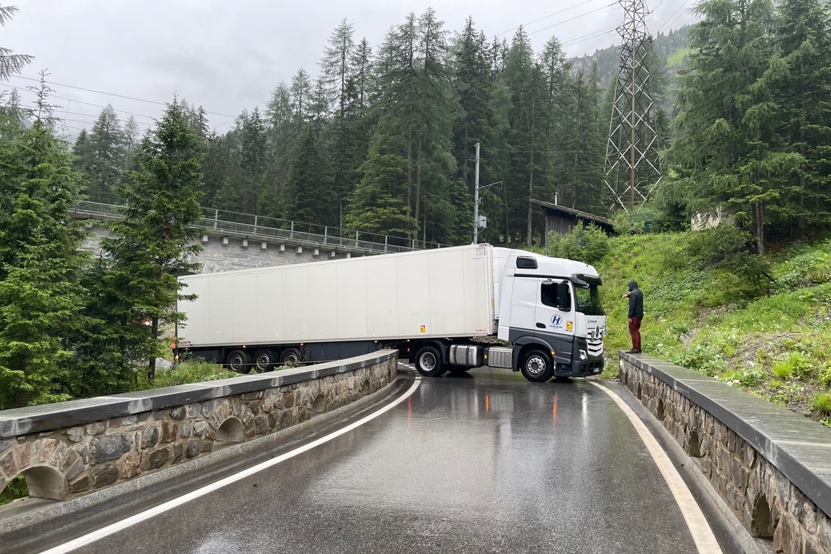 Der 51-jährige Chauffeur aus Usbekistan fuhr am Mittwoch mit einem in Litauen eingelösten Sattelmotorfahrzeug von Thusis kommend in Richtung Engadin um das Ladegut in Italien abzuladen. Auf der Anfahrt zum Albulapass, er folgte dem Navigationsgerät, missachtete er konsequent sämtliche Signale: Höchstbreite 2.3 Meter, Höchsthöhe 3.3 Meter, Anhängerverbot an Lastwagen und Höchstgewicht 18 Tonnen. Nach 18.30 Uhr musste er unterhalb Preda bei der Anfahrt auf das erste zu unterquerende Bahnviadukt feststellen, dass kein Weiterkommen mehr ist.