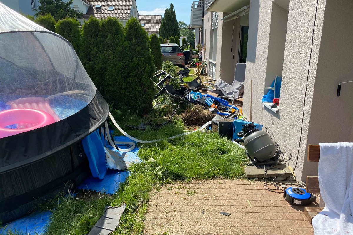 Da sich zum Unfallzeitpunkt keine Personen im Freien aufgehalten haben, wurde niemand verletzt. Auch die Fahrzeuglenkerin blieb unverletzt. Der Sachschaden am Auto, an der Hausfassade, den Grünanlagen sowie an den beschädigten Gegenständen beträgt mehrere Zehntausend Franken.