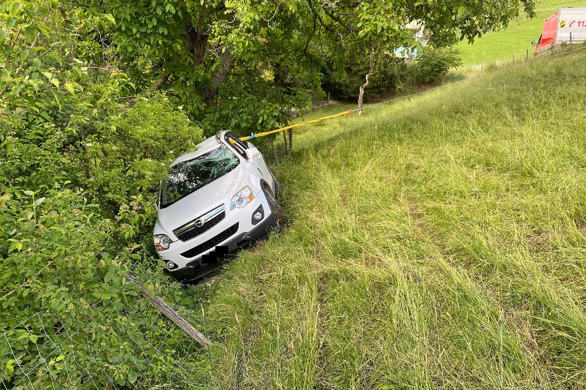 Die aufgebotene Feuerwehr konnte den Personenwagen sichern und so ein weiteres Abrutschen
