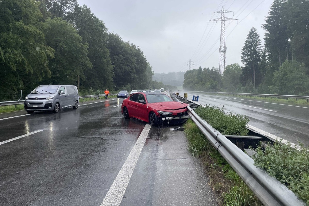 Bei anhaltendem Regen blieb die Fahrbahn nass, was gegen 16.30 Uhr auf dem gleichen Abschnitt zu einem weiteren Selbstunfall führte. Dabei verlor ein in Richtung Zürich fahrender Automobilist die Kontrolle über seinen Wagen. Der Alfa Romeo prallte schleudernd gegen die Mittelleitplanke. Während der Lenker unverletzt blieb, entstand am Auto Totalschaden.