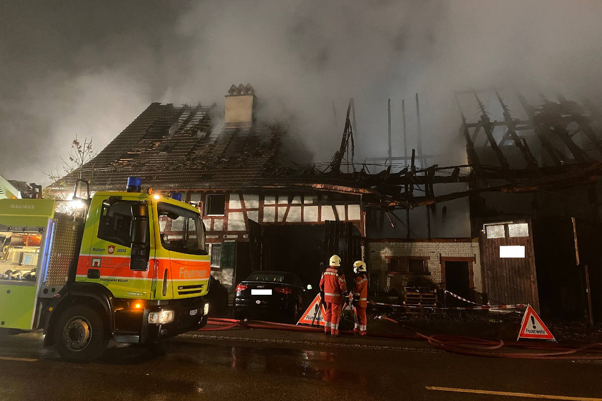 Beim Brand eines Wohn- und Geschäftshauses ist in Höri am Sonntag (25.10.2020) in den frühen Morgenstunden ein Schaden von mehreren hunderttausend Franken entstanden. Die Bewohner sind evakuiert worden.