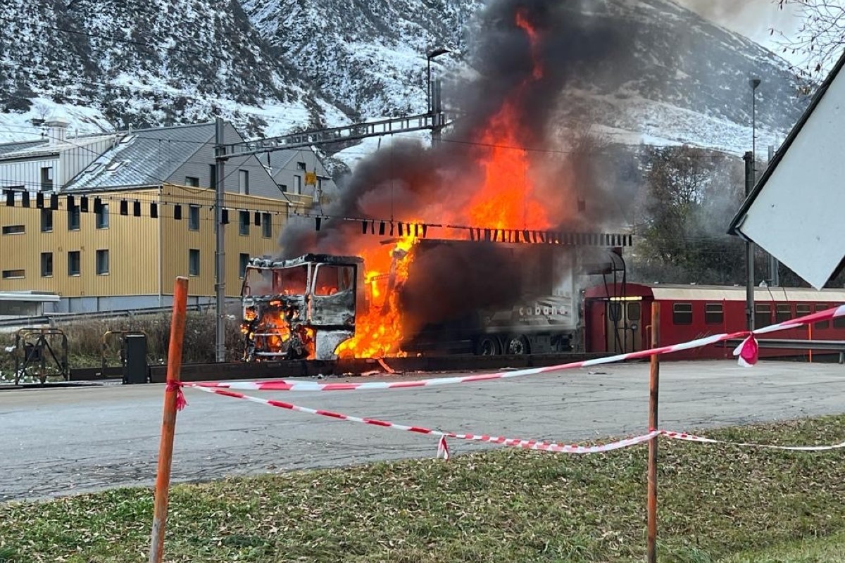 Der Lastwagen geriet während der Fahrt von Oberwald (VS) in Richtung Realp (UR) aus noch ungeklärten Gründen in Brand. Der Zug konnte nach Realp weitergeführt werden, wo alle Personen evakuiert und der Brand durch die aufgebotenen Einsatzkräfte gelöscht werden konnte.