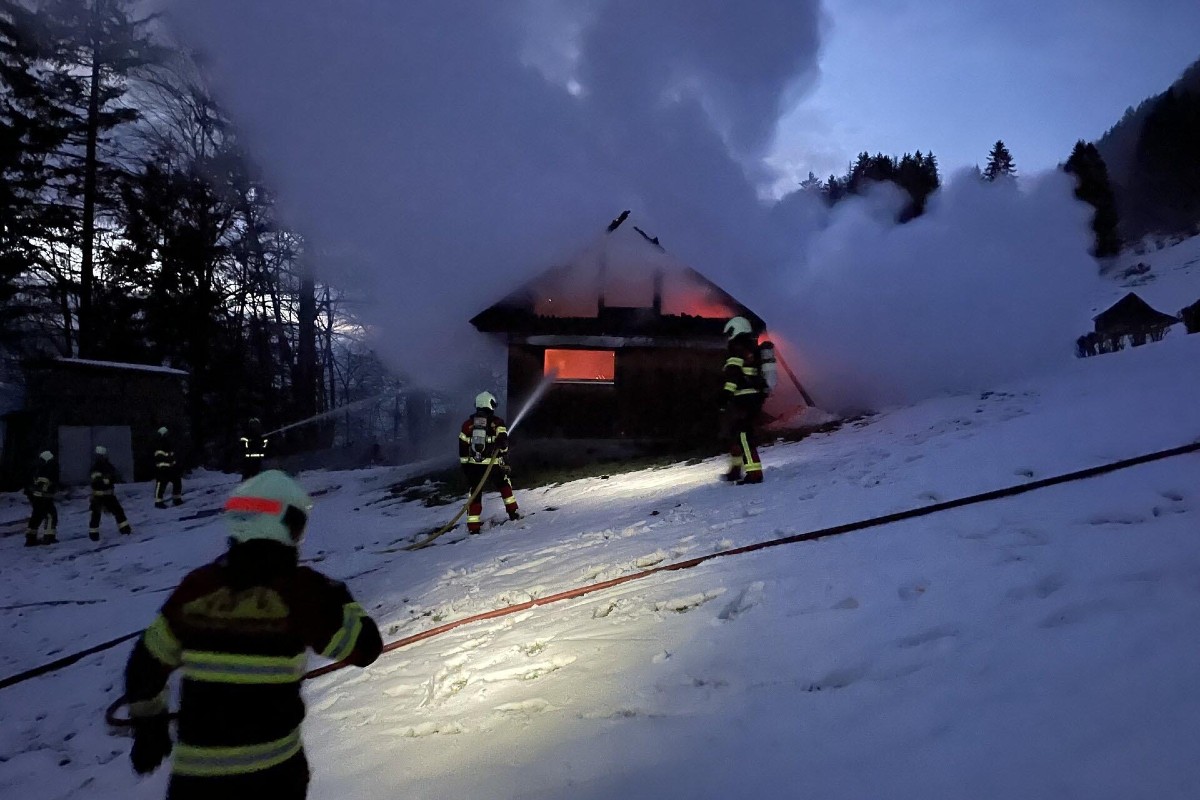 Beim Eintreffen der Einsatzkräfte stand das Gebäude bereits im Vollbrand. Die Feuerwehren Vorder- und Innerthal standen im Einsatz