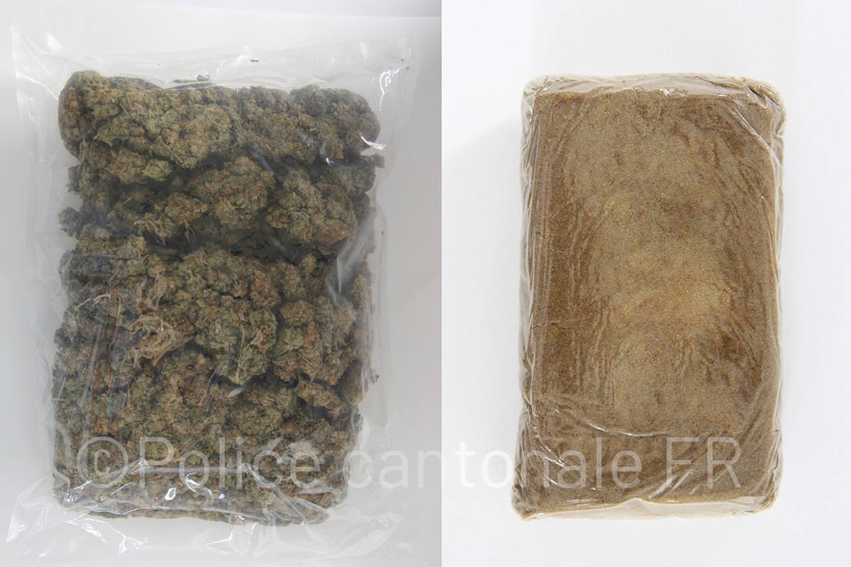 Am Freitagnachmittag, 30. Juli 2021, führte eine Polizeipatrouille auf der Route de Bulle in Vuisternens-devant-Romont eine Verkehrskontrolle durch. Dabei fanden die Beamten in einer Kiste im Fahrgastraum eines Fahrzeugs 1 kg Marihuana und 1 kg Haschisch.