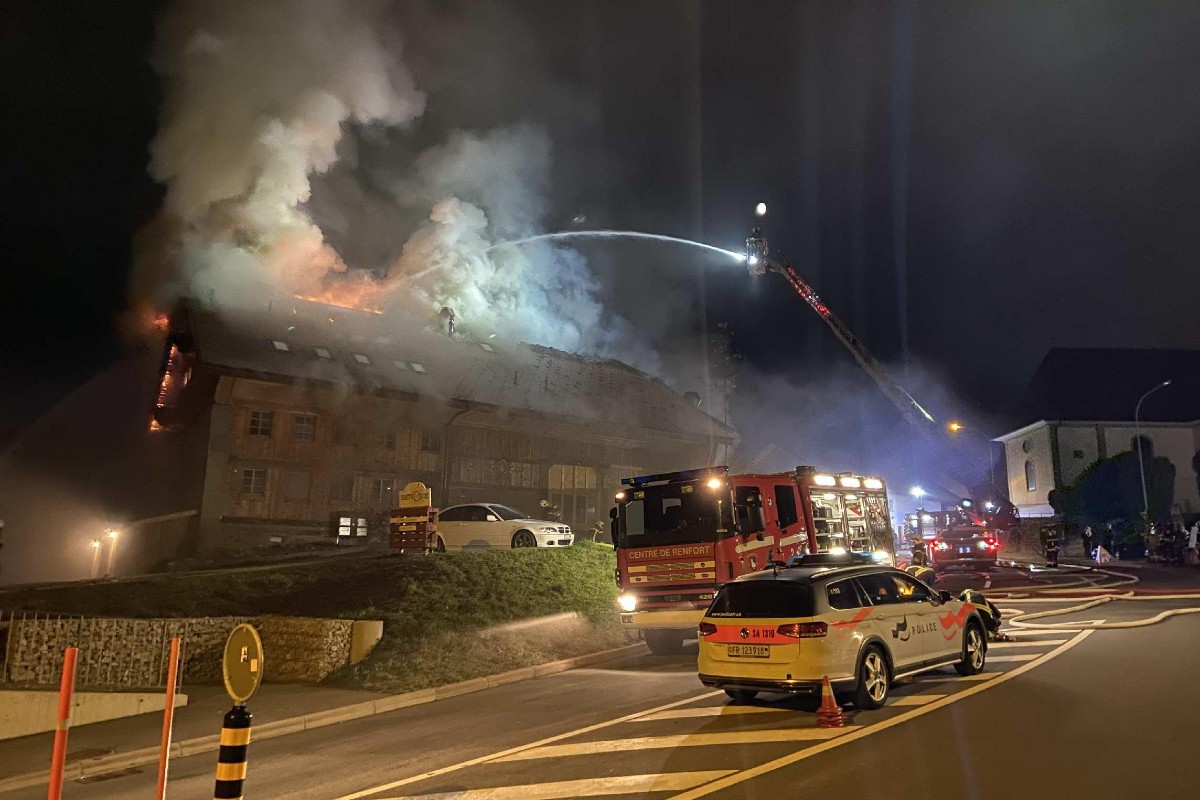 Am Donnerstag, den 1. April, kurz nach 4:00 Uhr morgens, wurde die Feuerwehr über einen Brand in einem Bauernhaus mit Restaurant und drei Wohnungen im Zentrum des Dorfes Vuisternens-en-Ogoz informiert.
