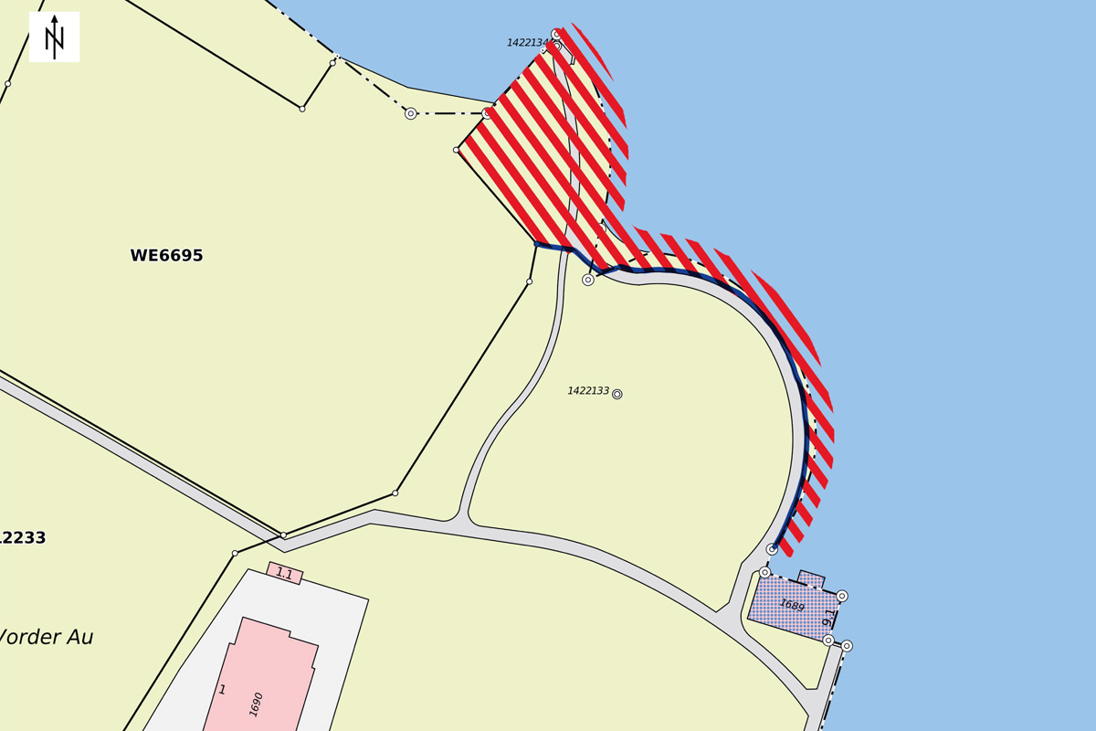 Die Ufermauer im Bereich «Vorder Au» ist akut einsturzgefährdet und darf weder vom Land noch vom Wasser her betreten werden.