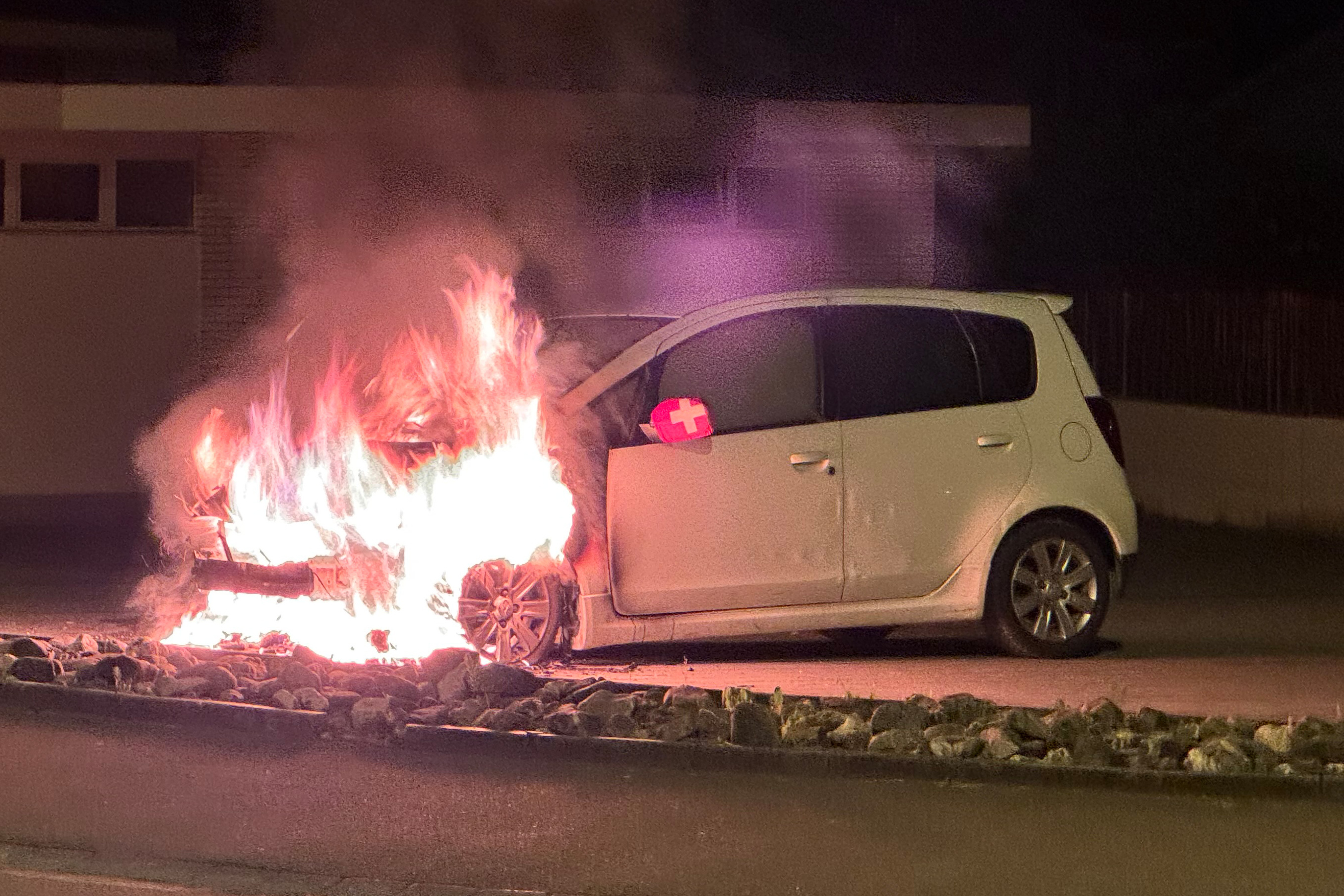 Kurz nach Mitternacht wurde der Kantonalen Notrufzentrale ein brennendes Auto gemeldet, das auf einem Parkplatz an der Lommiserstrasse abgestellt war.