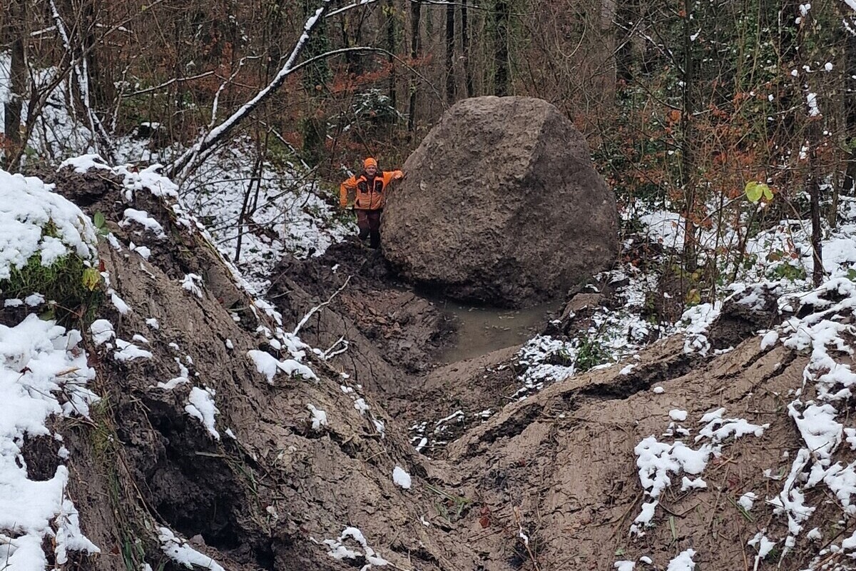 Am Mittwochabend löste sich oberhalb des Franzosenlochs in Walchwil ein rund 30 Tonnen schwerer Nagelfluhblock, schlug eine Schneise in den Wald und beschädigte die Hinterbergstrasse.