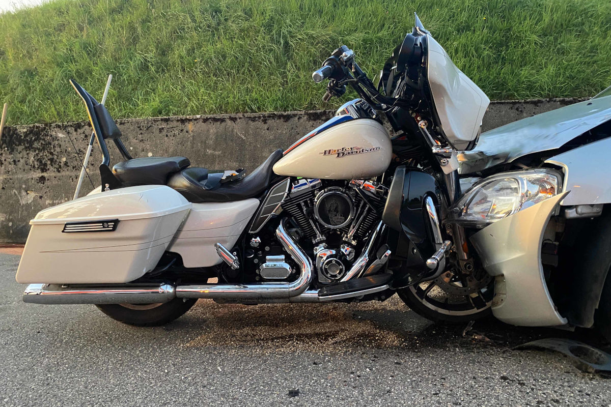 Der 34-jährige Harley-Lenker wurde bei dem Unfall schwer verletzt. (Bildquelle: Zuger Polizei)