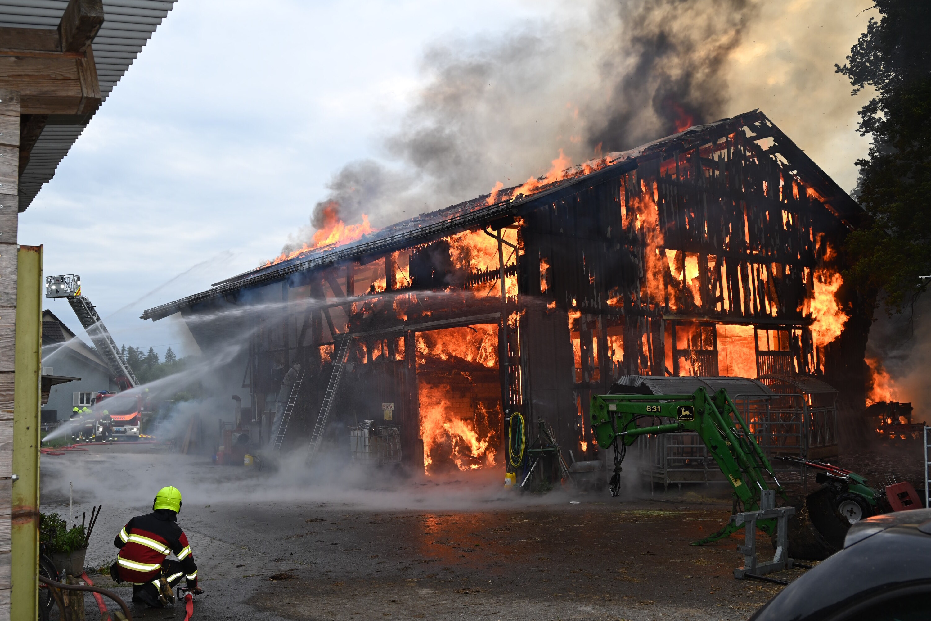 Der Heustock und einzelne Maschinen wurden ein Raub der Flammen. Der Sachschaden beläuft sich auf mehrere hunderttausend Franken.