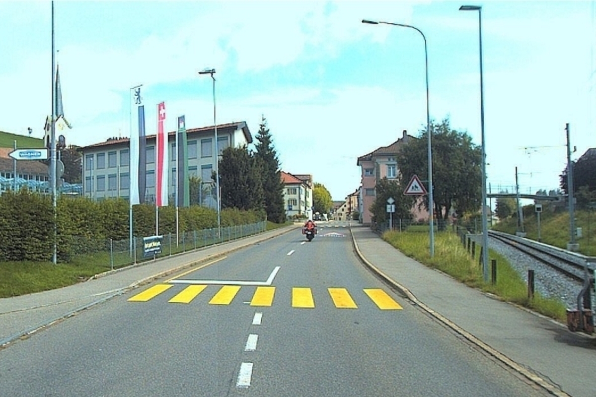 Die Fussgängerquerung der Urnäscherstrasse beim Schulhaus in Waldstatt wird verlegt und mit einer Mittelinsel versehen. (Bildquelle: Kantonskanzlei AR)