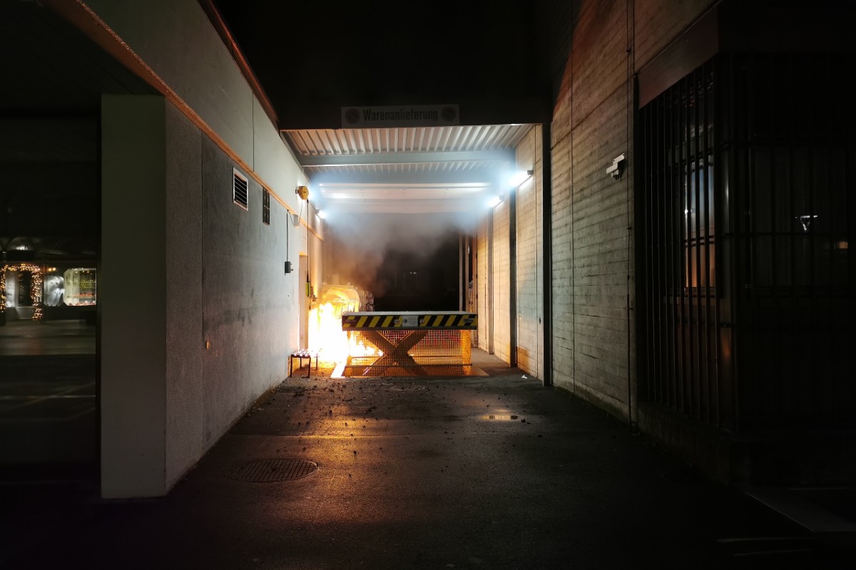 Am Montag (27.12.2021), kurz nach 03:20 Uhr, hat die Kantonale Notrufzentrale die Meldung von einem Brand an der Bahnhofstrasse, beim Durchgang zur Lindenstrasse, erhalten.