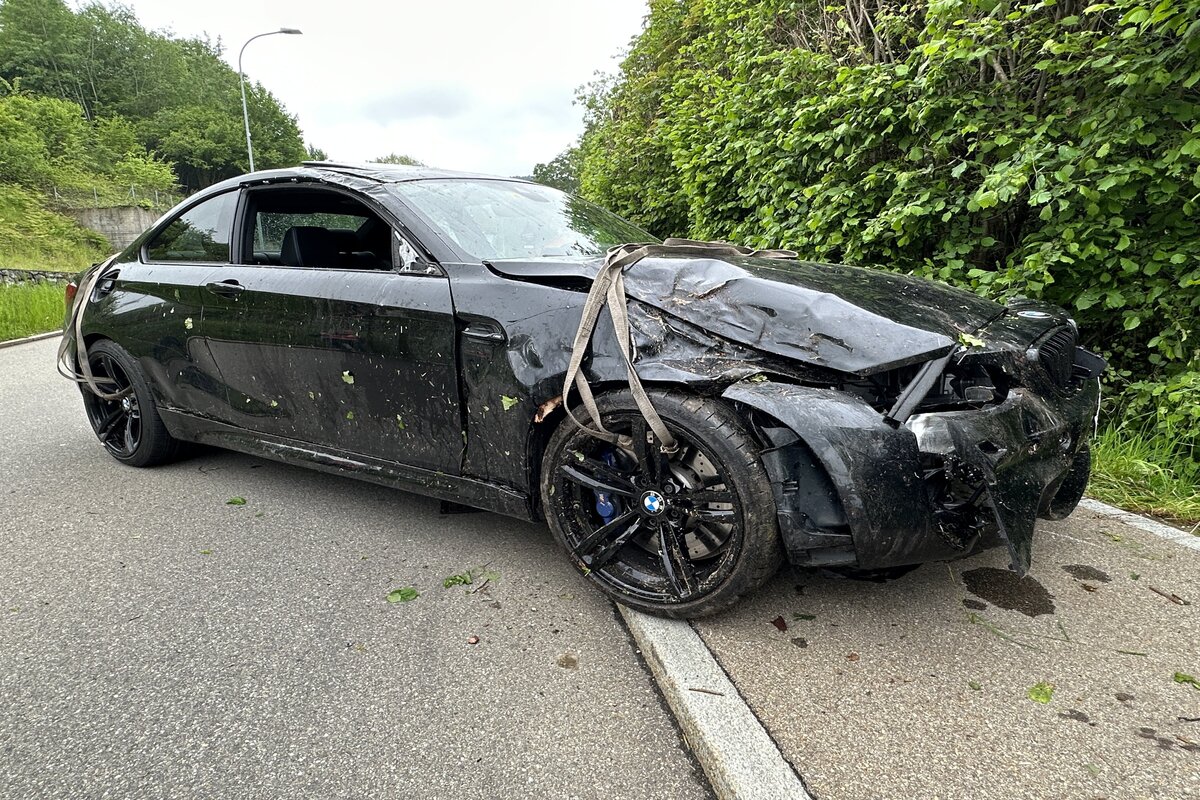 In der Folge geriet sie über die Gegenfahrbahn sowie das folgende Trottoir in ein angrenzendes Waldstück. Dort überschlug sich das Fahrzeug, bevor es rund 20 Meter abseits der Strasse auf dem Dache liegend und in total beschädigtem Zustand zum Stillstand kam.