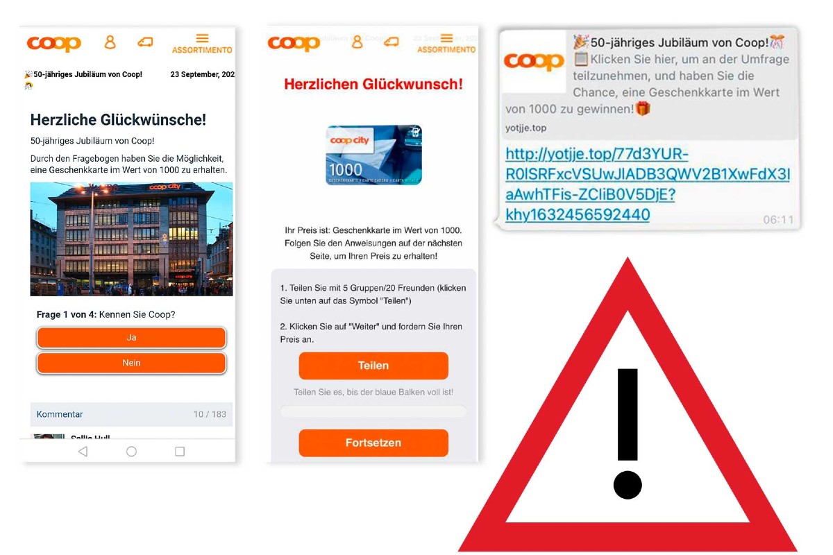 Coop warnt seine Kunden vor dem Öfnnen einer Whatsapp Nachricht.