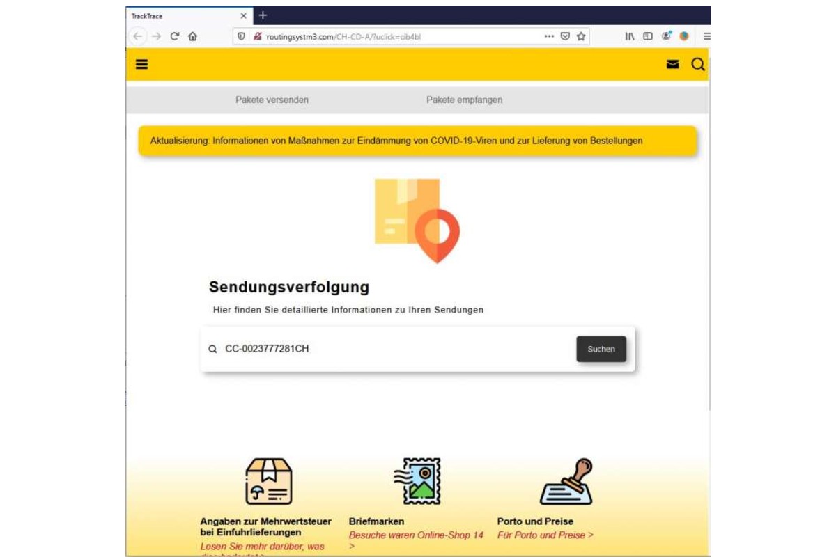 Screenshot Versandfertig (Bildquelle: Kantonspolizei Zürich)
