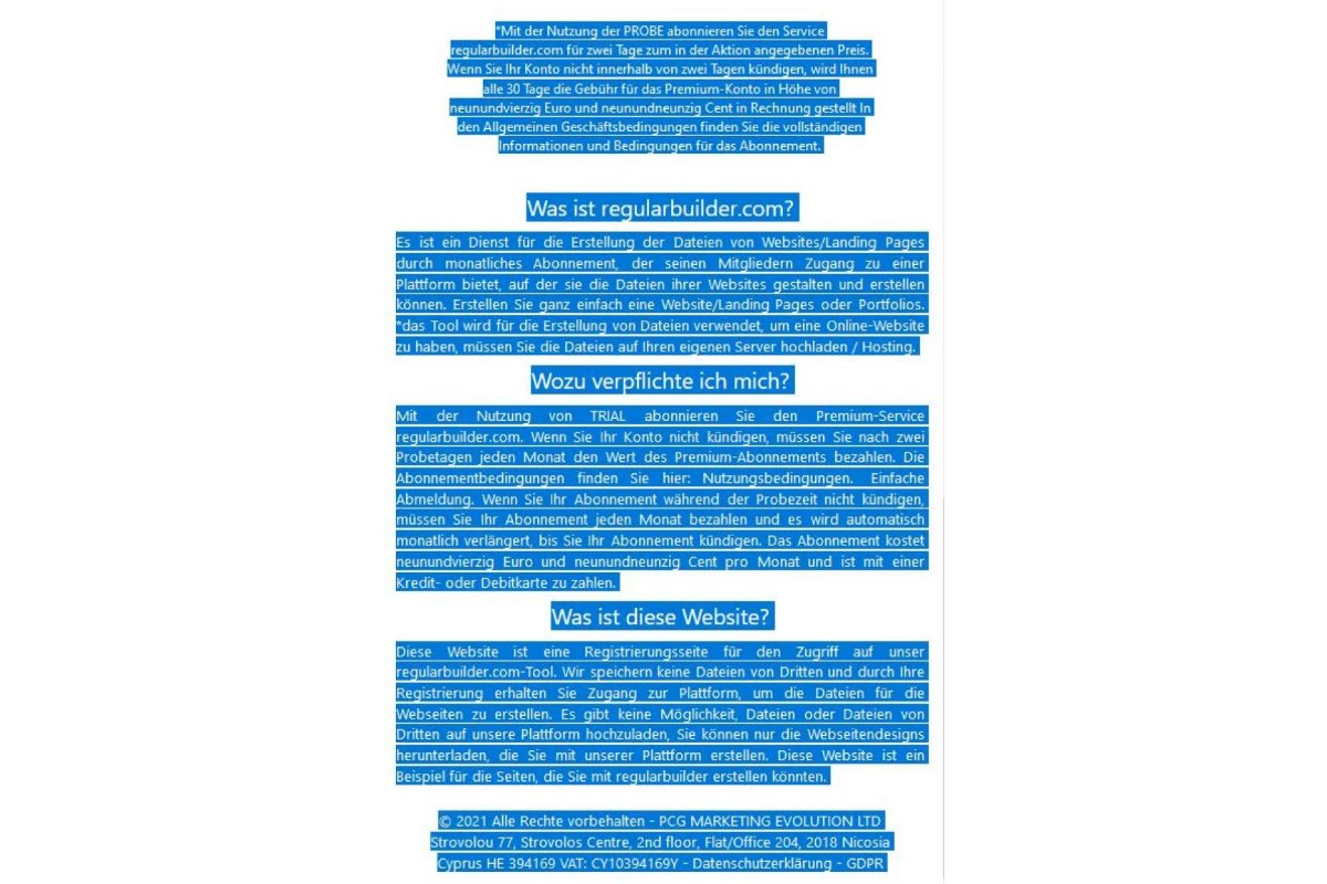 “Wenn Sie Ihr Konto nicht innerhalb von zwei Tagen kündigen, wird Ihnen alle 30 Tage die Gebühr für das Premium-Konto in Höhe von neunundvierzig Euro und neunundneunzig Cent in Rechnung gestellt”