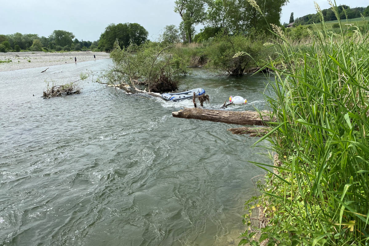 Am Sonntagmittag kollidierte auf der Thur bei Warth-Weiningen ein Schlauchboot mit einem Baumstamm. Die Kantonspolizei Thurgau rettete erfolgreich fünf Personen, es wurde niemand verletzt.