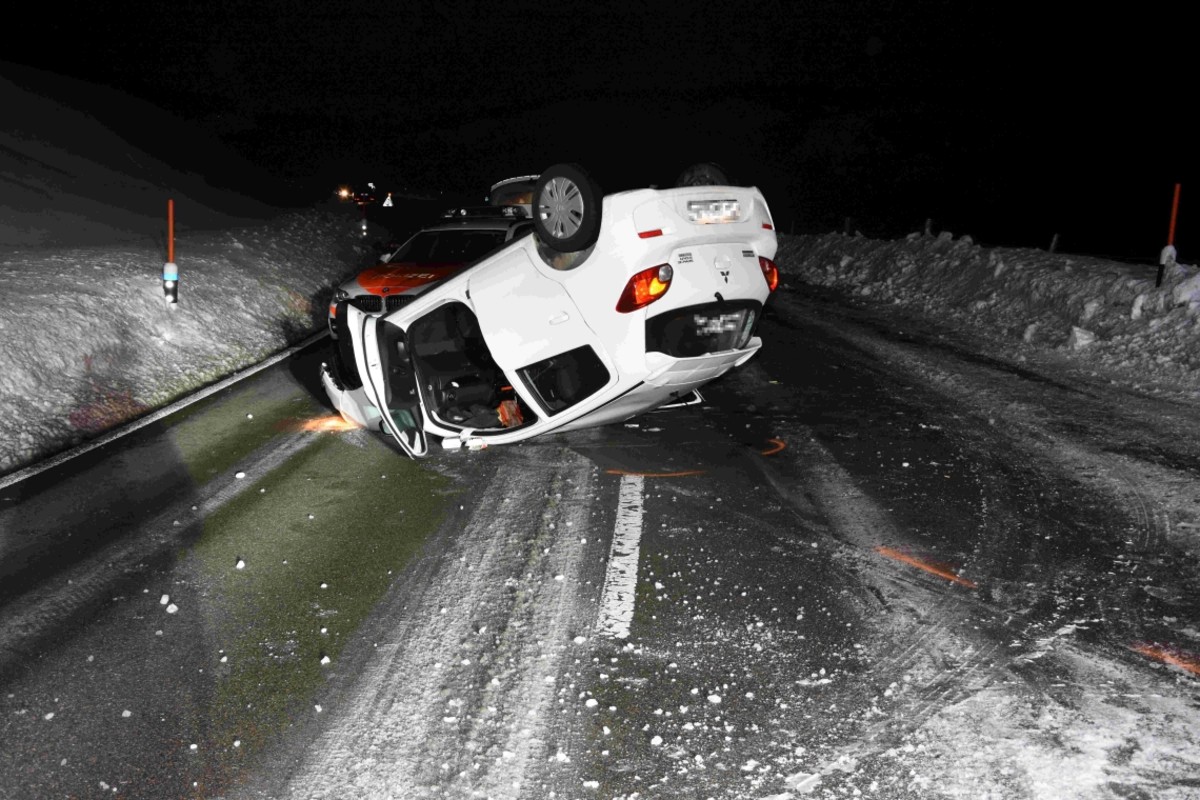 In der Rechtskurve, Höhe Blautöbeli, kam ihr Auto aus unbekannten Gründen über den rechten Strassenrand hinaus und prallte in eine Schneemade. Durch den Aufprall wurde das Auto abgewiesen und überschlug sich. Es blieb auf dem Dach liegend auf der Fahrbahn liegen.