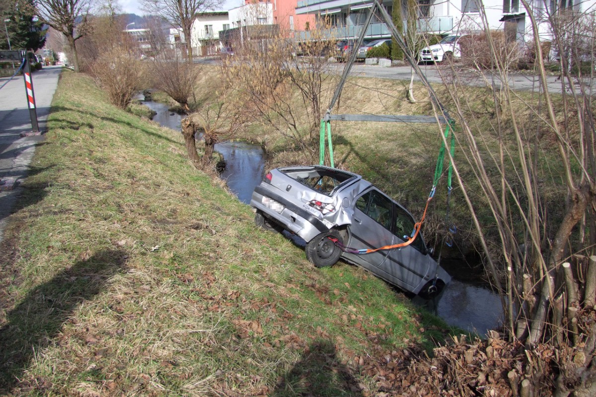 In der Folge überquerte es die Fahrbahn und fuhr in den gegenüberliegenden Kanal "Böschach". Als Ursache für den Unfall steht ein medizinisches Problem im Vordergrund. Wegen Verdacht auf Fahrunfähigkeit wurde der Frau der Führerausweis vor Ort abgenommen.