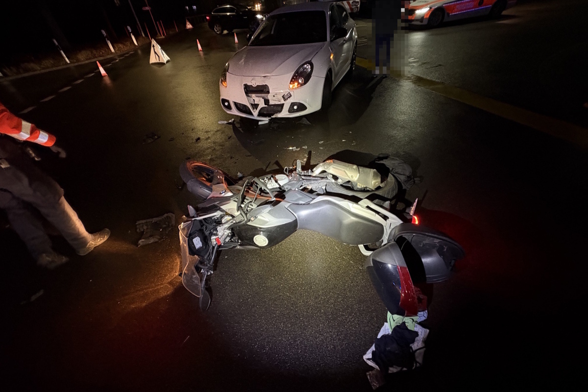 Der 41-jährige Motorradfahrer wurde durch den Unfall unbestimmt verletzt. Er musste vom Rettungsdienst ins Spital gebracht werden. Es entstand Sachschaden im Wert von mehreren hundert Franken.