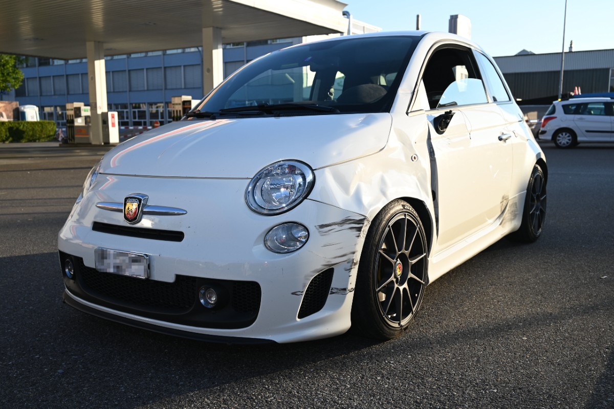 Ein Töff ist auf in den Fiat 500 Abarth geprallt. (Bildquelle: Kantonspolizei St.Gallen)