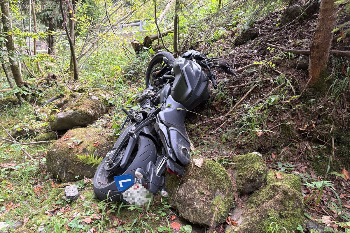 In der Folge stürzte der Mann zu Boden und rutschte hinter seinem Motorrad in Richtung der linksseitigen Randleitschranke. Das Motorrad rutsche unter der Leitschranke durch in Richtung Bach und kam am Bachbord zum Stillstand.
