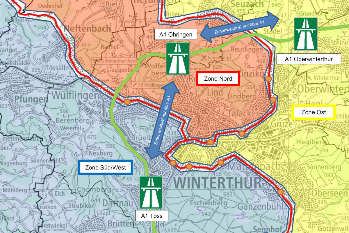 Zwischen ca. 9 Uhr und ca. 12 Uhr ist im ganzen Stadtgebiet mit grossen Beeinträchtigungen für den motorisierten Individualverkehr und den öffentlichen Nahverkehr zu rechnen. Die Zufahrt zu den einzelnen Stadtteilen ist in dieser Zeit nur über die Autobahnzubringer Töss, Ohringen und Oberwinterthur möglich (siehe beiliegende Zonenaufteilung oder unter Verkehrsbehinderungen Rad-WM — Stadt Winterthur).