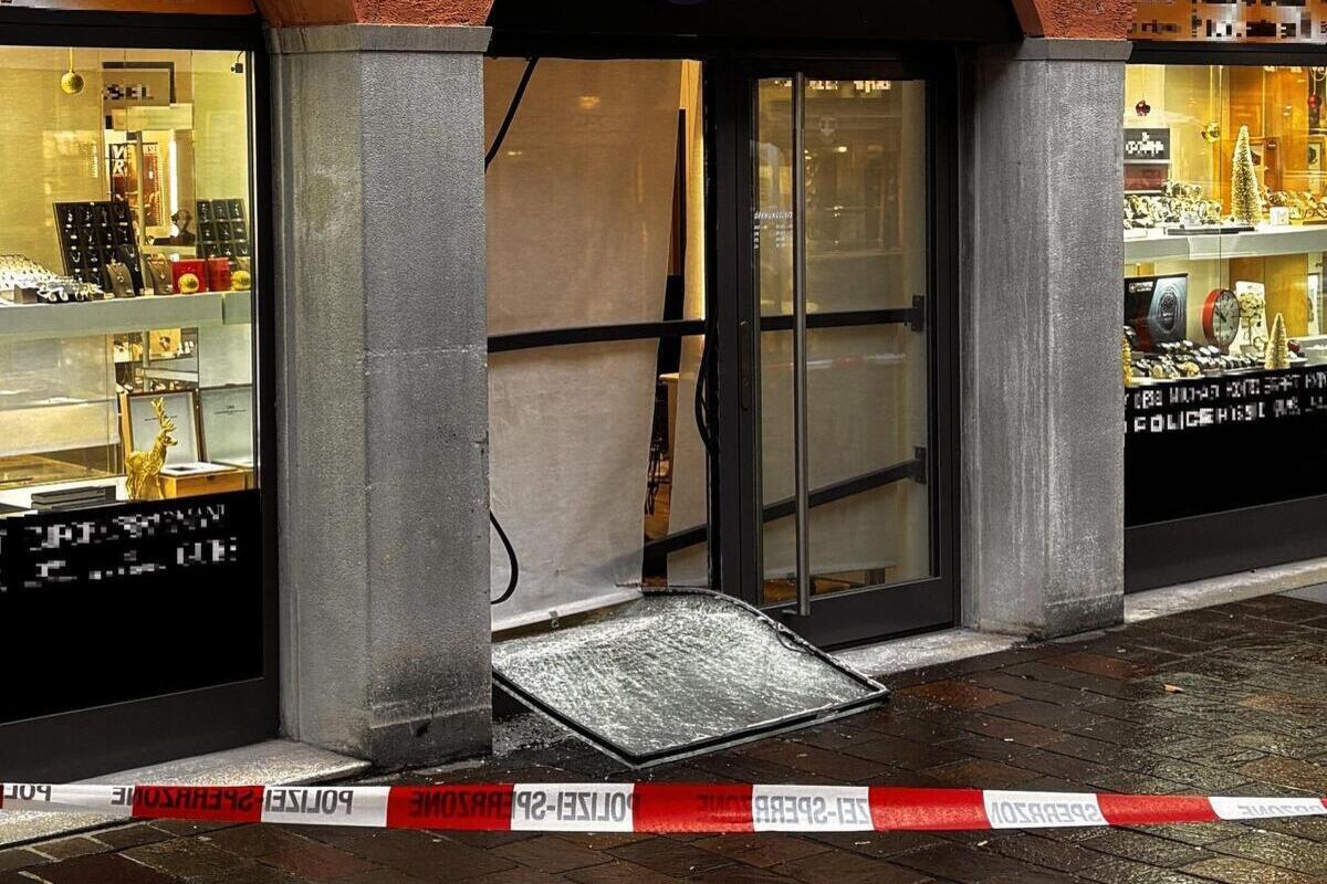 Eine unbekannte Täterschaft fuhr gegen 4.30 Uhr mit einem gestohlenen Personenwagen rückwärts gegen die Eingangstüre des Juweliergeschäftes. So verschafften sie sich Zutritt in das Geschäft an der Obergasse. Die Einbrecher entwendeten Uhren und Schmuck von noch unbekanntem Wert. Anschliessend flüchteten sie mit dem für den Einbruch benutzten Personenwagen. Am Gebäude und am Inventar entstand ein Schaden von mehreren tausend Franken.