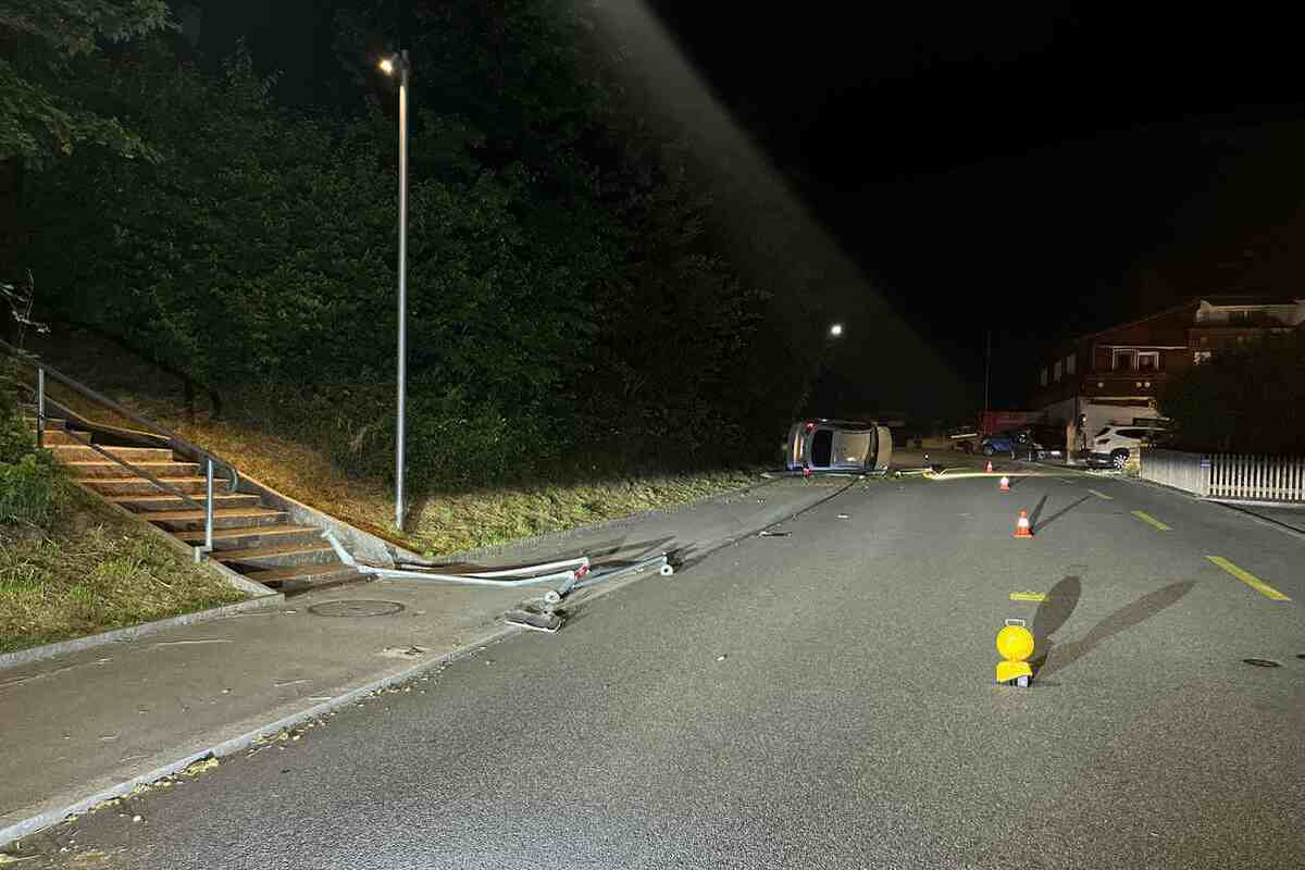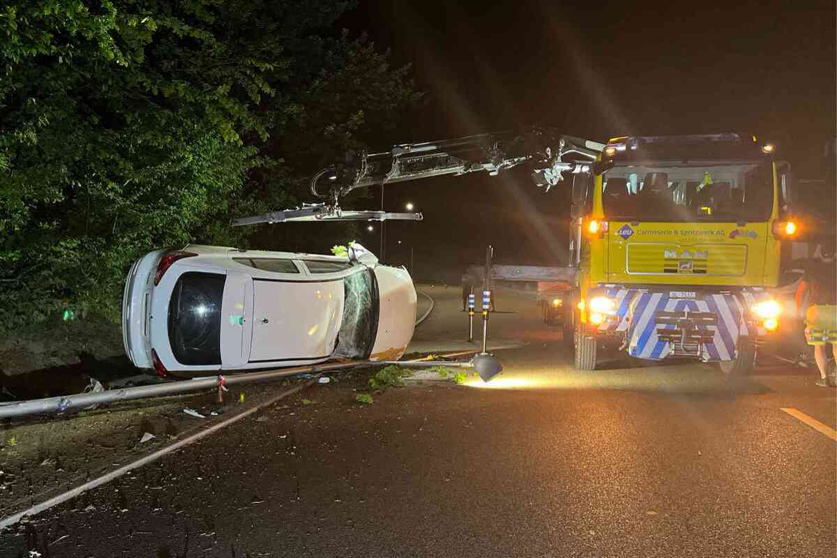 In der Folge prallte das Auto in einen Lichtkandelaber und kam schliesslich auf der Seite liegend zum Stillstand. Der Automobilist konnte das Fahrzeug selbstständig verlassen und blieb unverletzt. Das Unfallauto musste durch ein Abschleppunternehmen mit Hilfe eines Krans geborgen und abtransportiert werden.