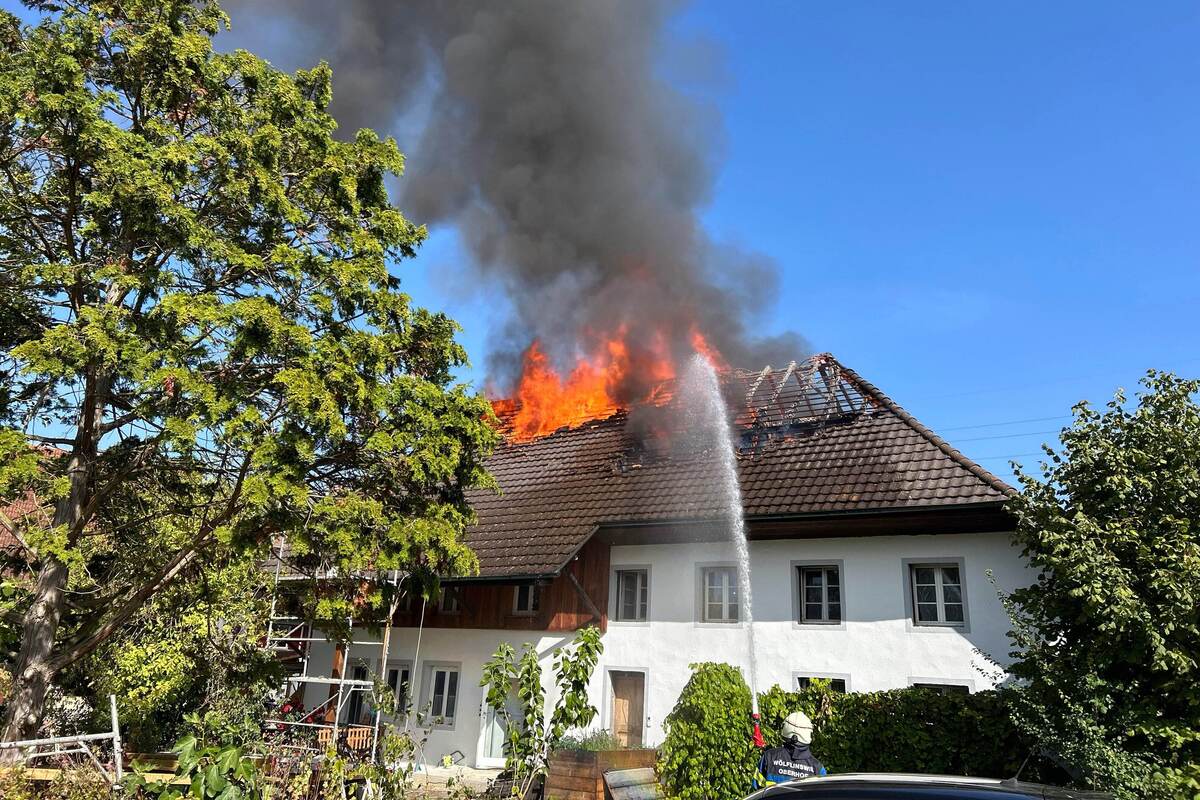 Das ehemalige Bauernhaus umfasst mehrere Wohnungen und befindet sich an der Oeligasse in Wölflinswil. Anwesende Bewohner vernahmen am Montag, 2. Oktober 2023, kurz vor 14 Uhr Rauchgeruch und bemerkten beim Sicherungskasten Flammen. Als die alarmierte Feuerwehr eintraf, brannte der Dachstock bereits lichterloh. Einem Grossaufgebot mehrerer Feuerwehren gelang es rasch, den Brand unter Kontrolle zu bringen und schliesslich zu löschen.