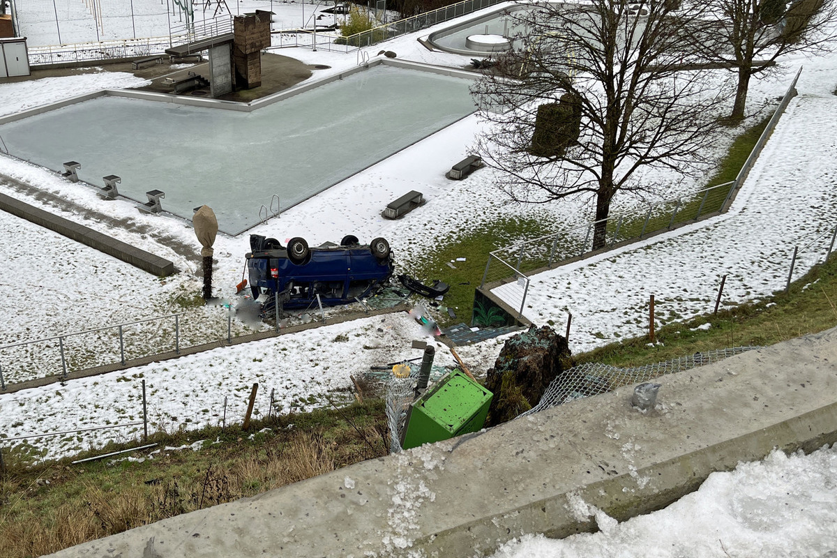 In der Folge überschlug sich der Personenwagen, durchbrach einen weiteren Zaun und kam schliesslich auf dem Dach liegend, auf dem Rasen des geschlossenen Schwimmbads Wolhusen, zum Stillstand. Zwei Personen wurden beim Unfall verletzt und durch den Rettungsdienst 144 ins Spital gebracht.