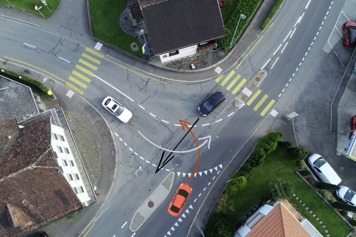 - Rot fährt aus untergeordneter Nebenstrasse – kein Vortritt