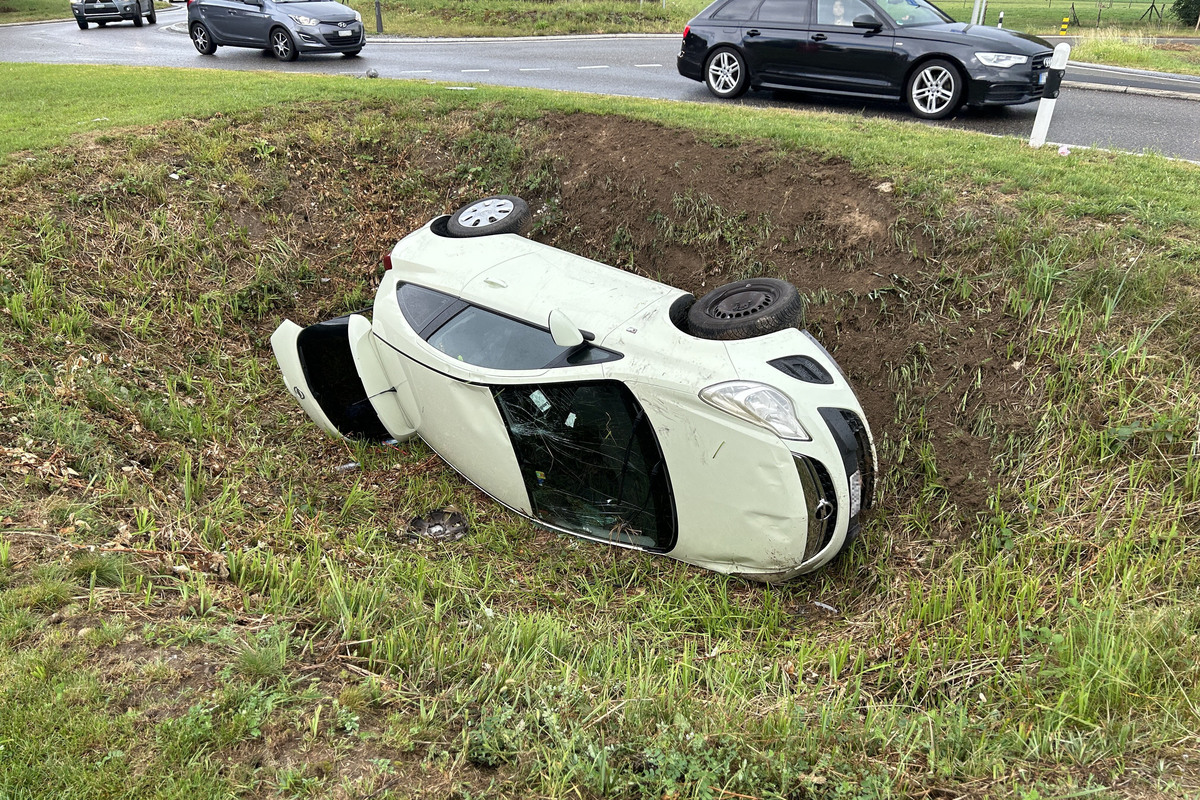 Ein Opel-Lenker verlor im Kreisverkehr die Kontrolle über sein Fahrzeug. Das Auto kam in einer Grube zum Stillstand. Verletzt wurde niemand.
