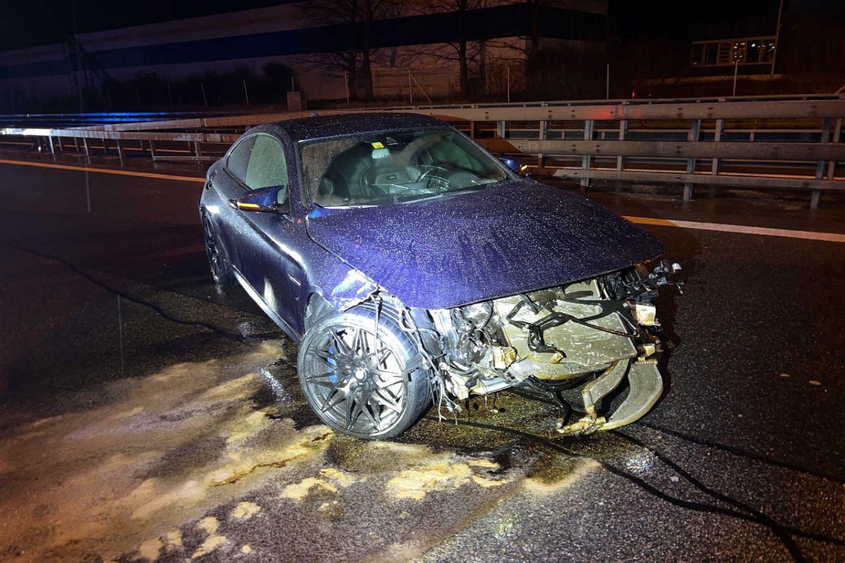 prallte heftig gegen die Mittelleitplanke. Der 40-Jährige blieb