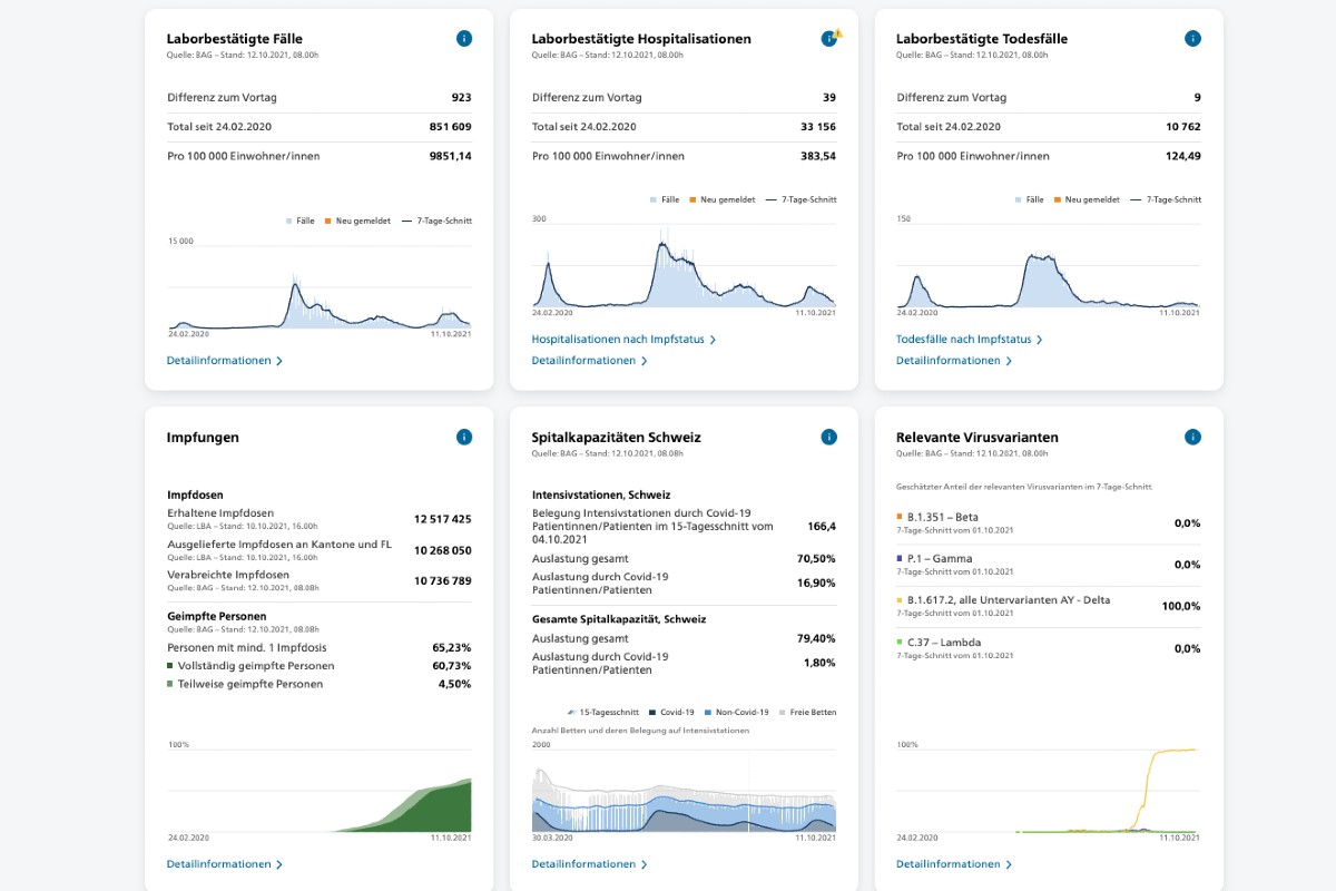- Verabreichte Impfdosen - 10'736'789 (12.10.2021 10:43)