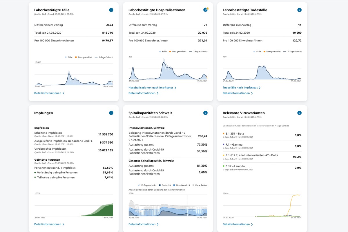 - Fr 10.09.2021 - 37'680 Tests, 2'894 positive Fälle, 7,68%