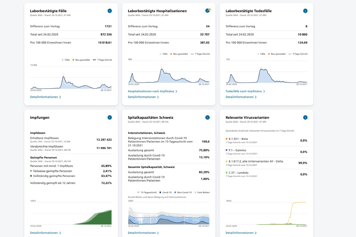 - Do 28.10.2021 - 24'828 Tests, 1'792 positive Fälle, 7,22%