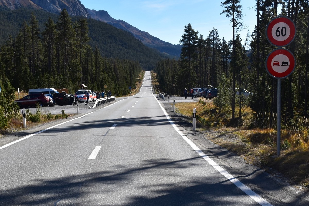 Zernez GR - Auto überschlägt sich nach Kollision auf dem Opfenpass