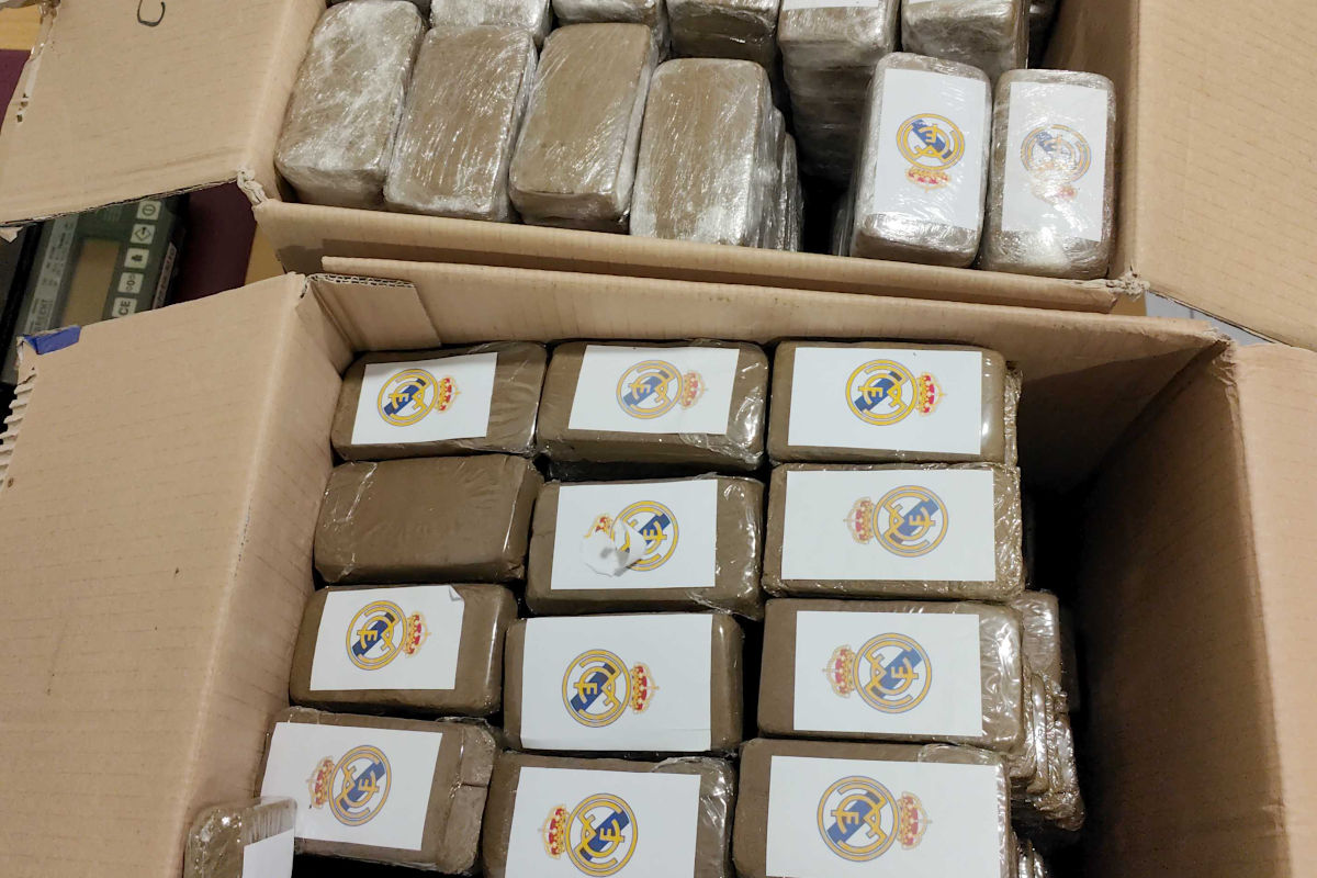 Bei der Kontrolle des Fahrzeugs wurden zwei Kisten mit fast 500 Paketen zu je rund 100 Gramm vermeintlichen Cannabis-Produkten festgestellt.
