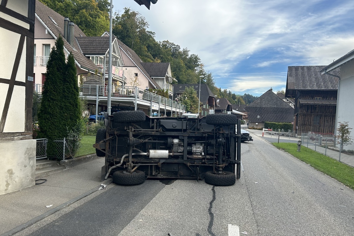 Am Dienstagabend, 7. Oktober 2025, ist es in Zollbrück (Gemeinde Lauperswil) zu einer Kollision zwischen zwei Autos gekommen. In der Folge kippte ein Fahrzeug um. Es kam zu erheblichen Verkehrsbehinderungen.