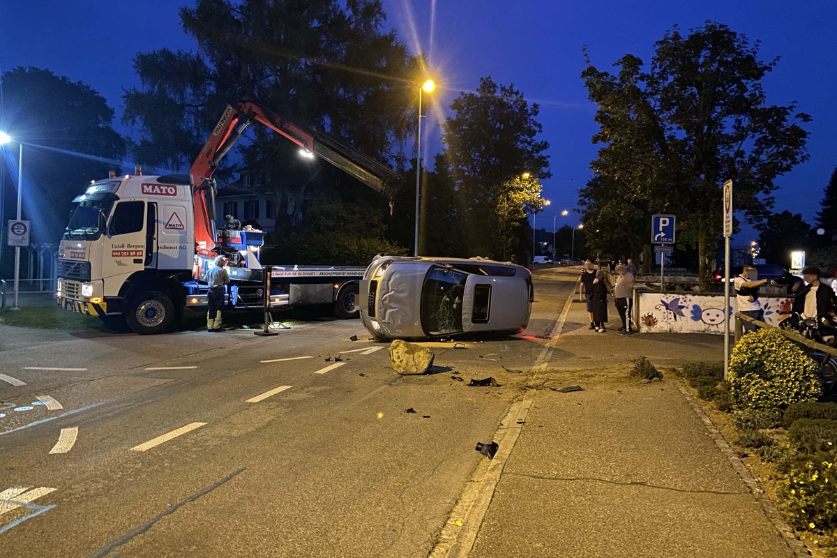 Ein Neulenker verlor gestern Abend die Kontrolle über seinen Wagen. Dieser prallte gegen einen Steinblock und überschlug sich. Die Beifahrerin wurde zur Kontrolle ins Spital gebracht.