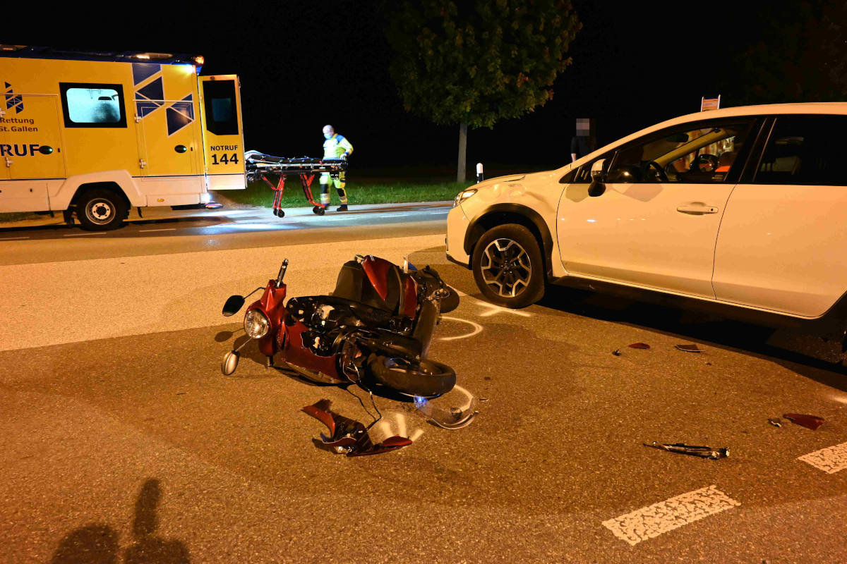 Am Samstag (18.09.2021), kurz nach 20 Uhr, ist es auf der St.Gallerstrasse zu einem Zusammenstoss zwischen einem Auto und einem Motorrad gekommen. Der 18-jährige Motorradfahrer wurde dabei unbestimmt verletzt und wurde durch die Rettung ins Spital gebracht.