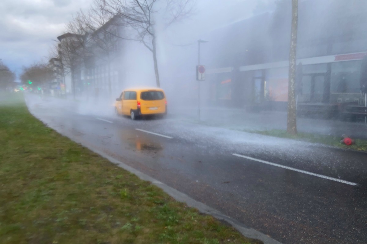 Nach einem Unfall eines Lieferwagens im Kreis 11 in Zürich mit einem Hydranten spritzte das Wasser mehrere Meter in die Höhe. Der Lenker des Lieferwagens wurde dabei verletzt.