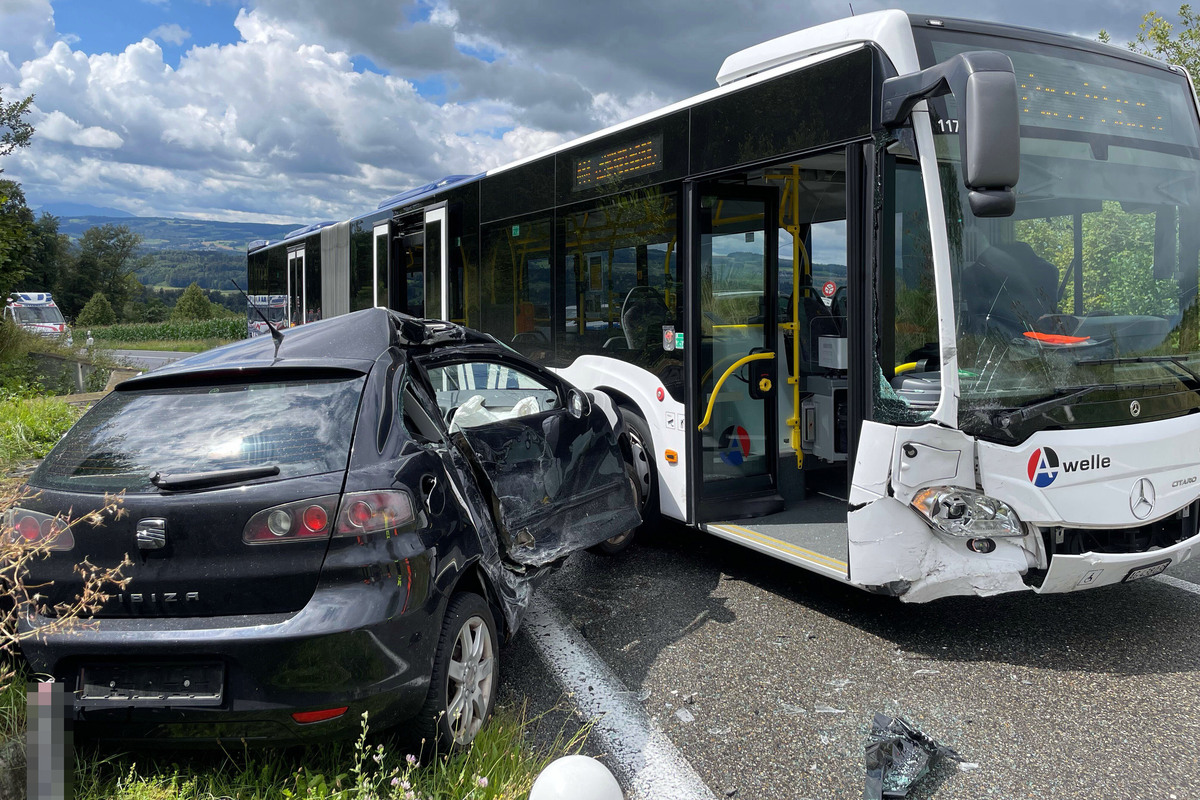 Am Auto entstand Totalschaden. Auch der Bus wurde erheblich beschädigt.