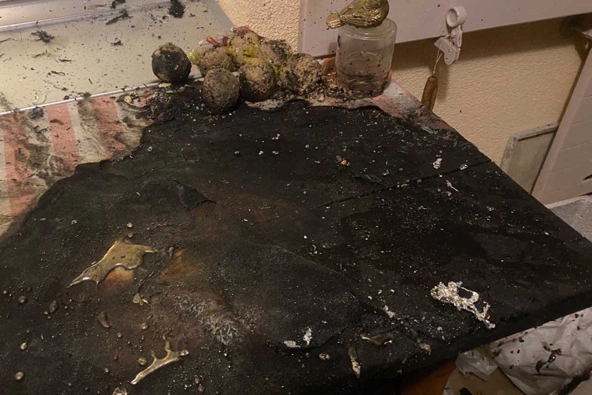 Als die Frau den Brand bemerkte, versuchte sie vergeblich die Flammen zuerst mit einem Tuch und anschliessend mit einem Krug Wasser zu löschen. Ein Nachbar, der durch den Rauch auf das Feuer aufmerksam wurde, eilte der Frau zu Hilfe. Schliesslich gelang es dem 52-Jährigen, die Flammen zu löschen.
